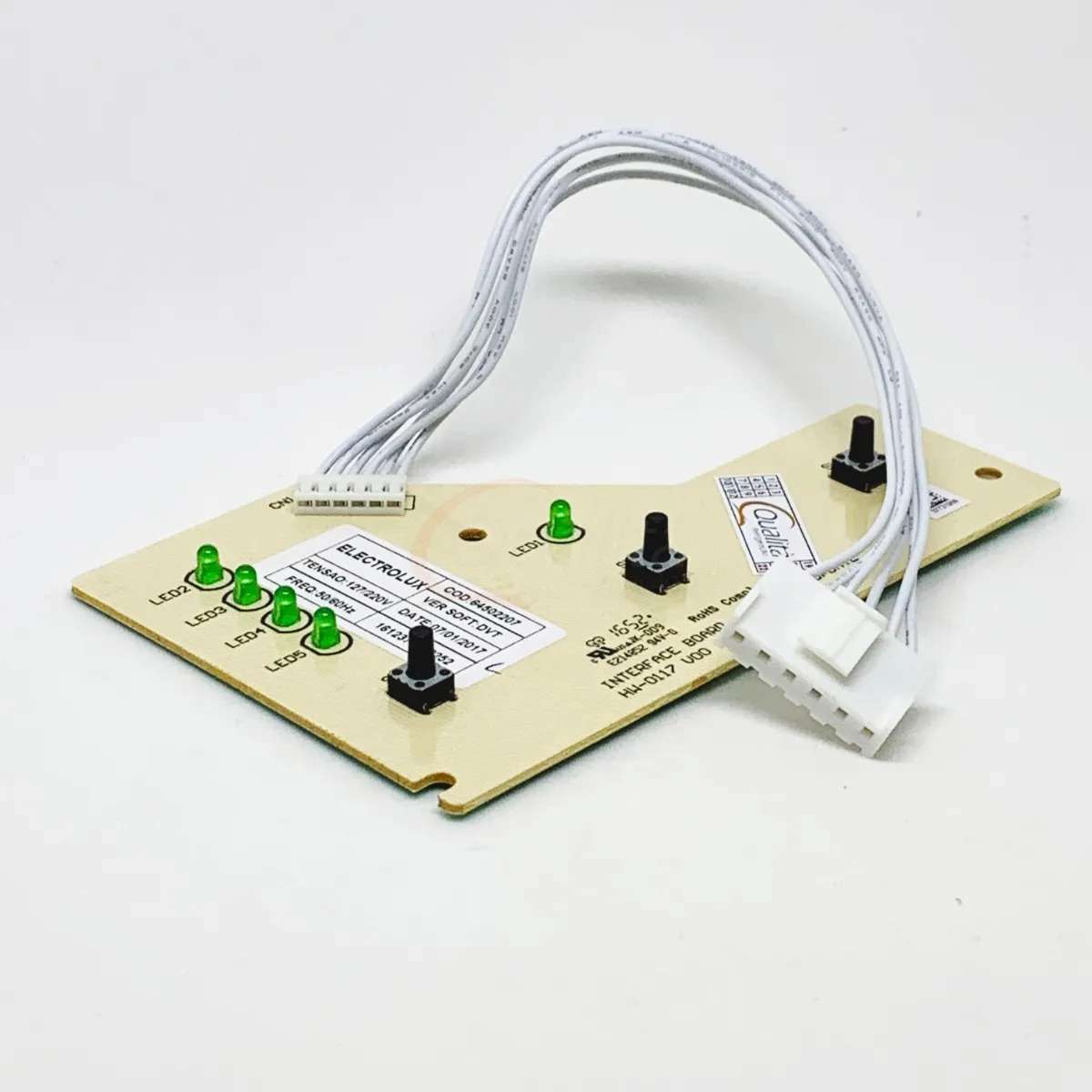 Placa interface original Electrolux 64502207 bivolt versão 2 com chicote para lavadora LTE12. Componente eletrônico para controle do painel e funções da lavadora. Compatível com tensão 110V ou 220V.